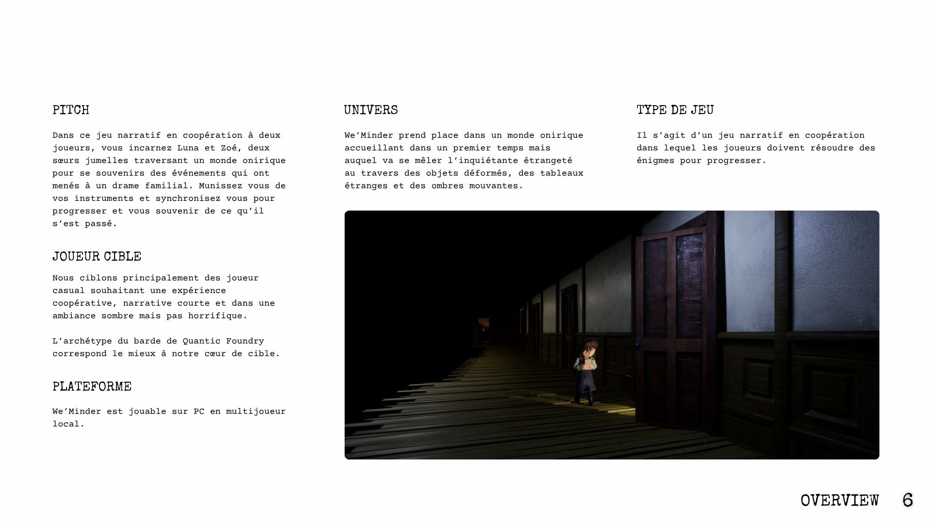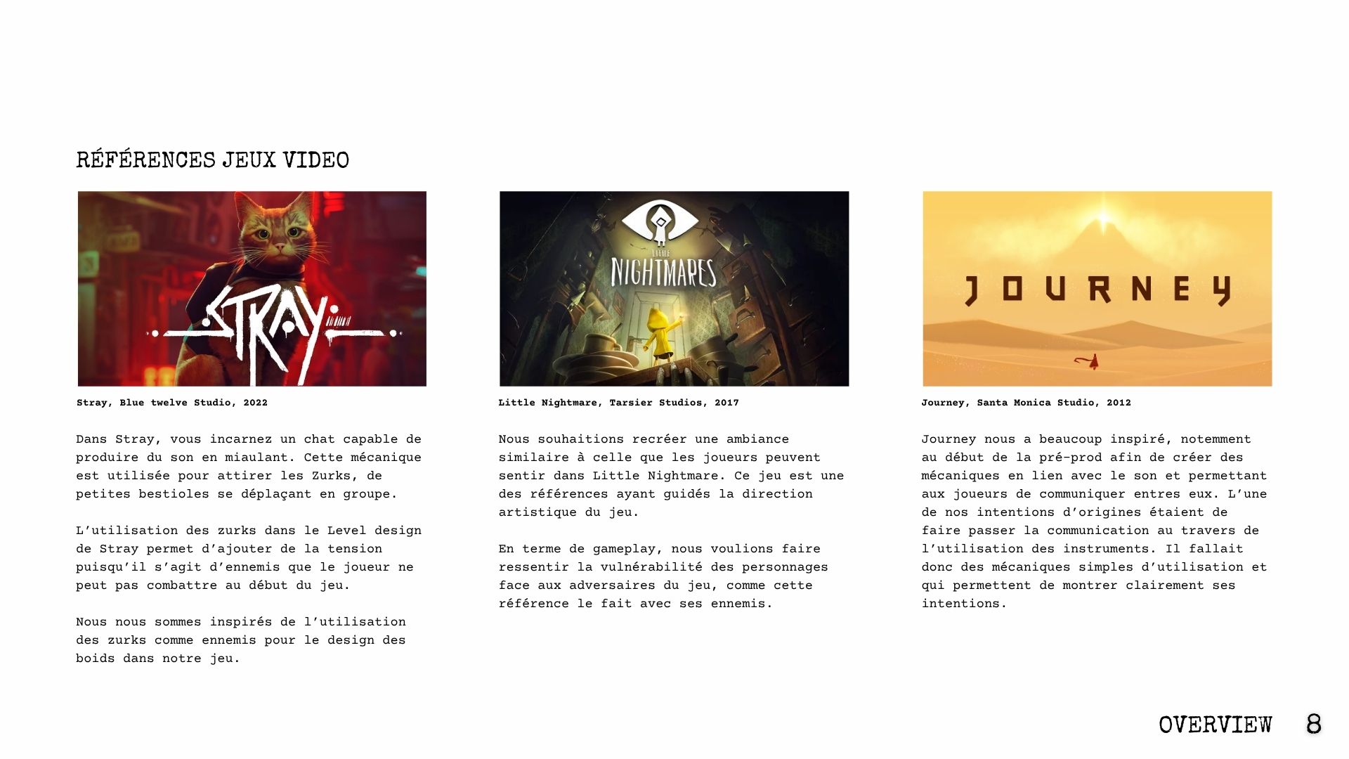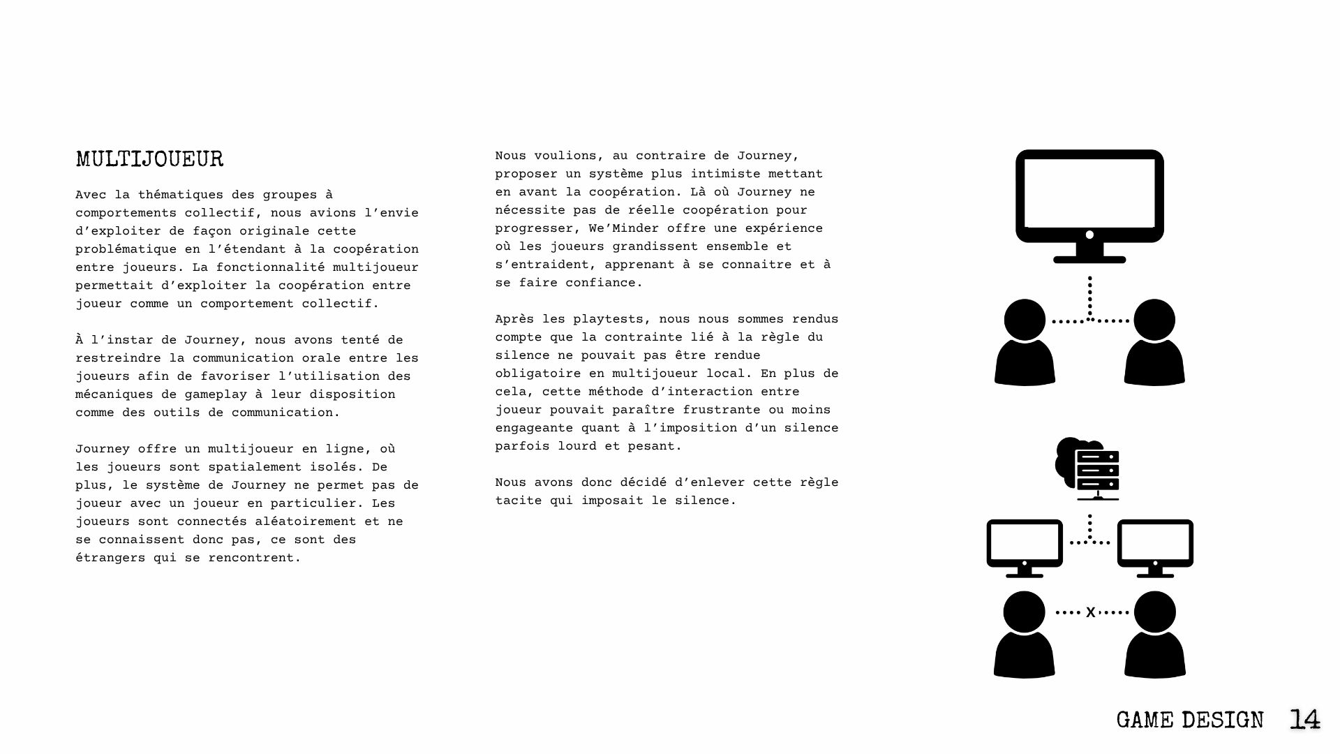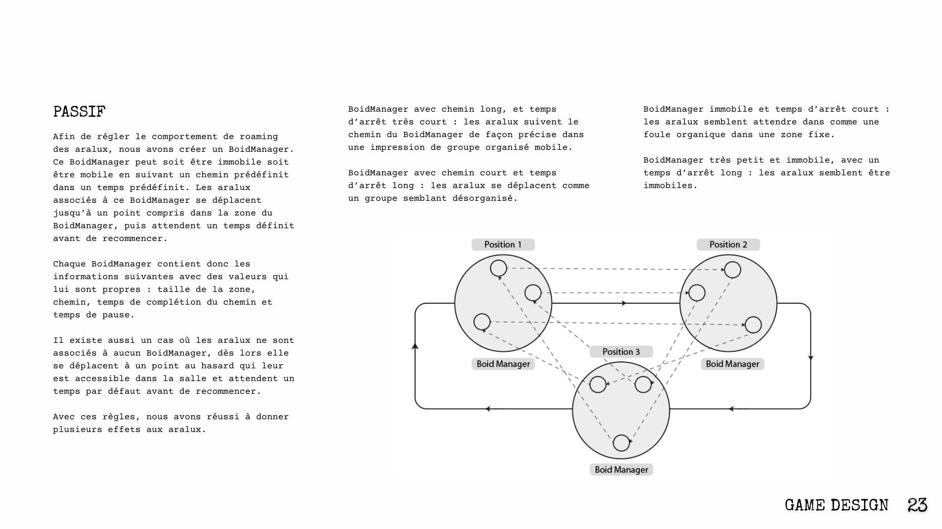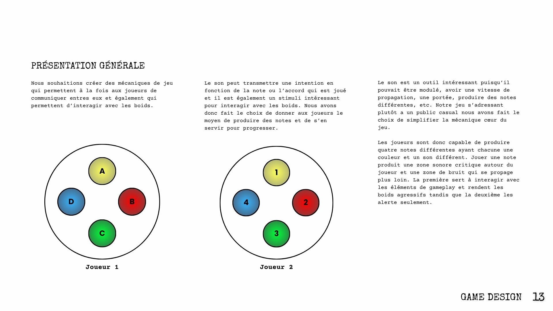 During my third year at ICAN Lille, we developed an advanced prototype of a narrative co-op puzzle game over the course of five months. The theme of the project was: “How can Game Design integrate collective behavior groups in a video game?”. The objective was to draw a parallel between swarm-like collective behaviors and two-player, where player interactions evolve dynamically throughout the cooperative experience.