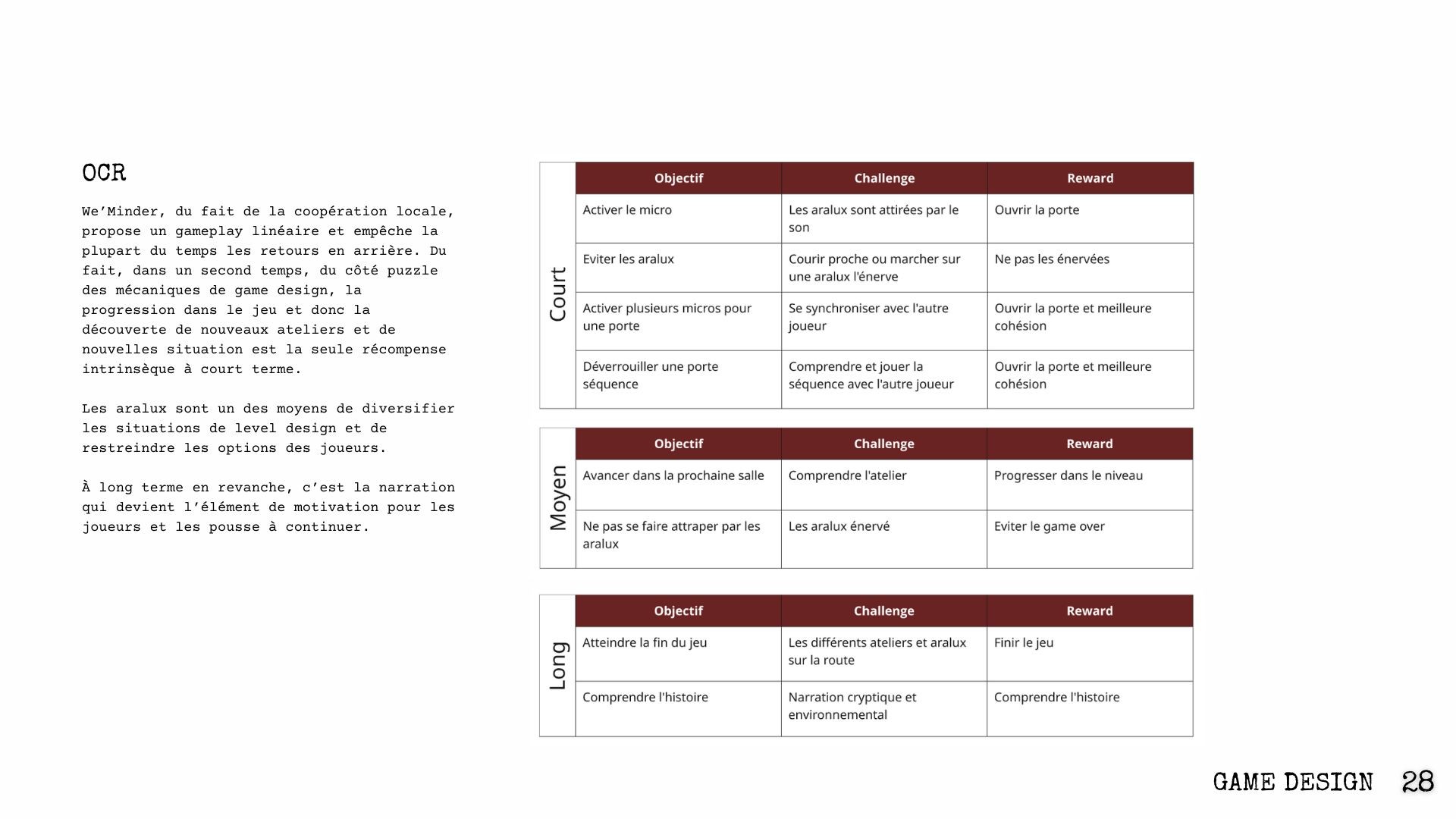 This full gameplay video showcases the core mechanics, level progression, and cooperative interactions at the heart of the experience. It offers a complete look at how the systems, level design, and player dynamics come together in real-time. Right after the video, you’ll find the Game Design Document, which includes all technical details of the project — from core and extended gameplay loops (OCR) to system diagrams, design rationales, and development processes.