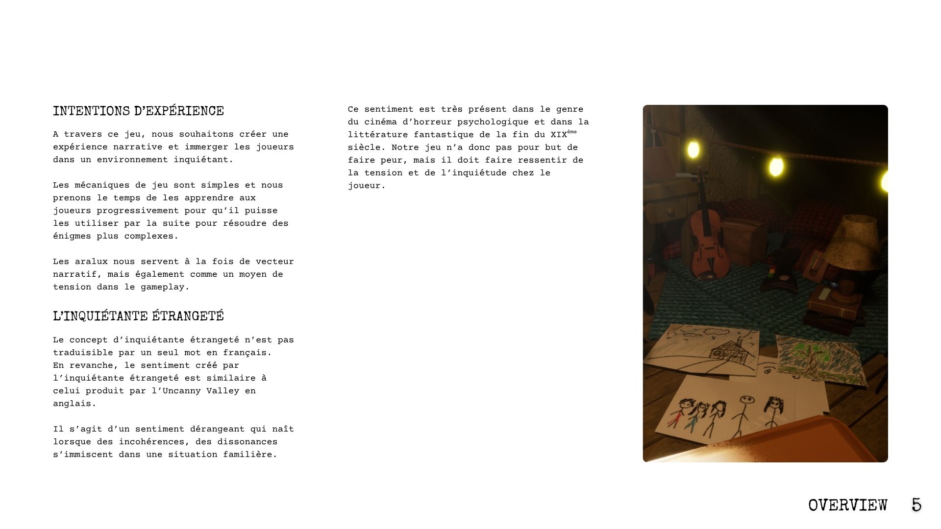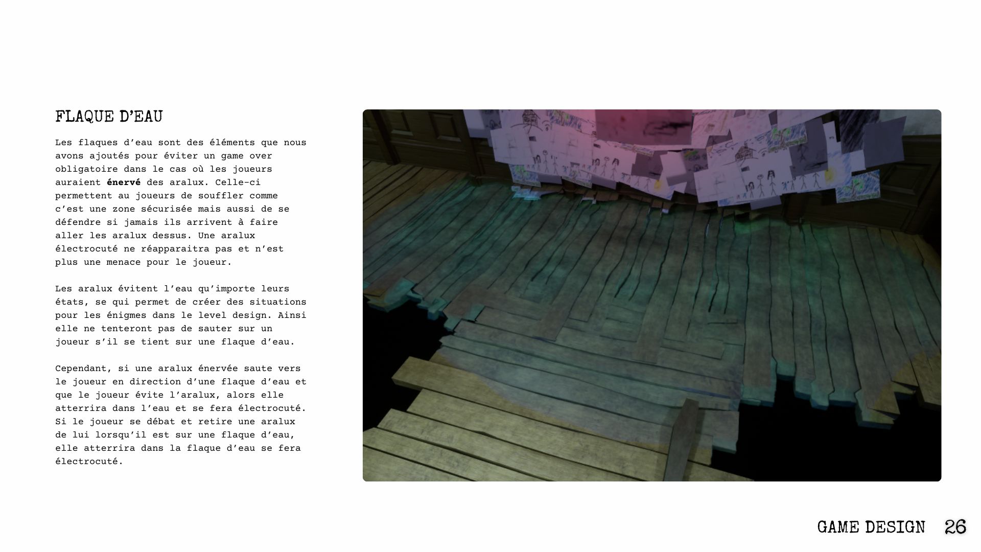 In this project, I was responsible for the game design and the mechanical impact of each system within the game. I handled all aspects of environmental modeling, texturing and the level design. I also took care of the lighting setup with Antoine Vermesse to enhance the overall atmosphere and player experience.